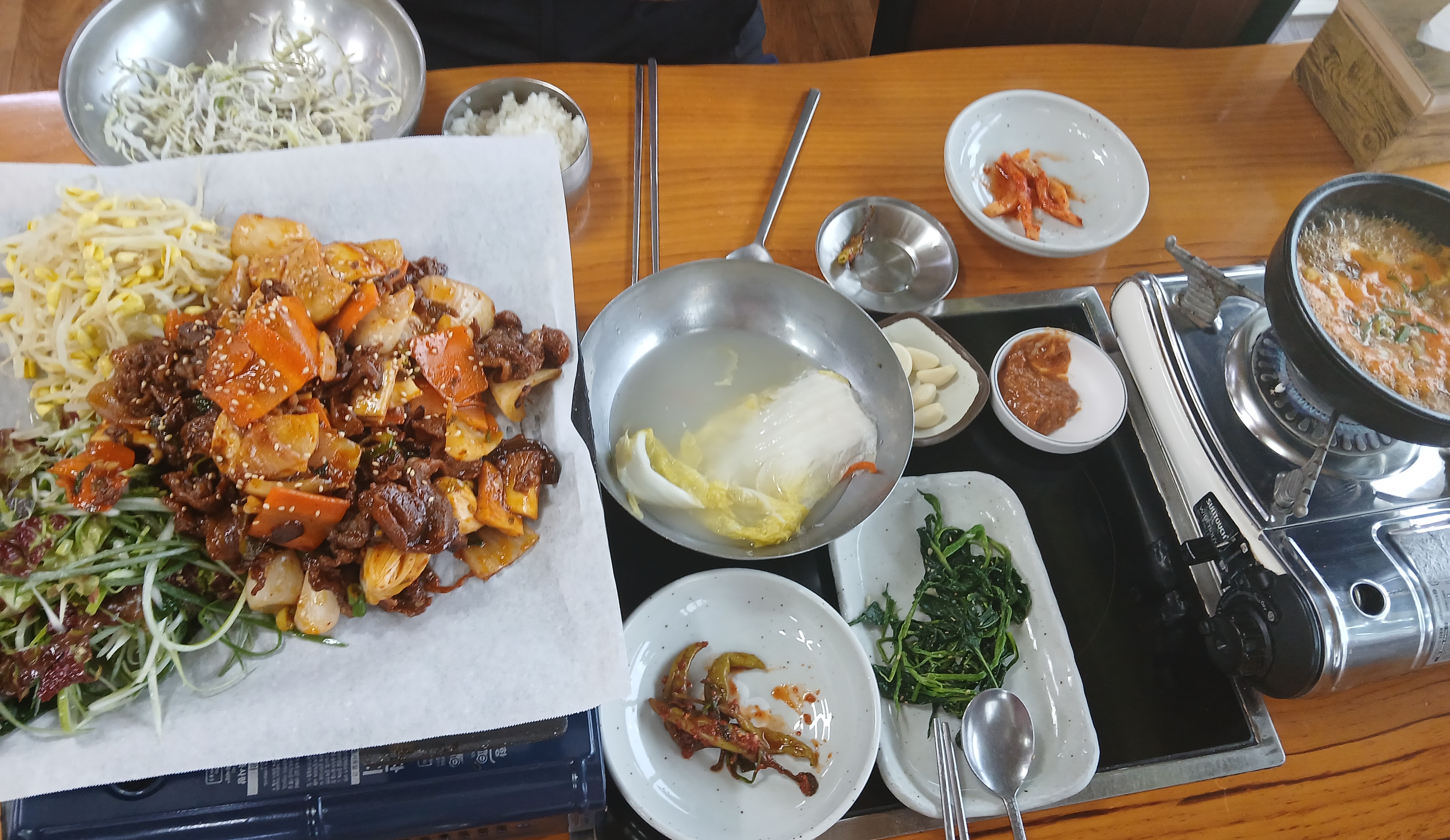 3인분이 기본이지만 양이 많아 2명이서도 충분히 즐길 수 있습니다. 고기뿐 아니라 된장찌개, 나물, 물김치, 장아찌 등 밑반찬 하나하나도 주인장의 손맛이 느껴지는 정성 가득한 구성입니다.