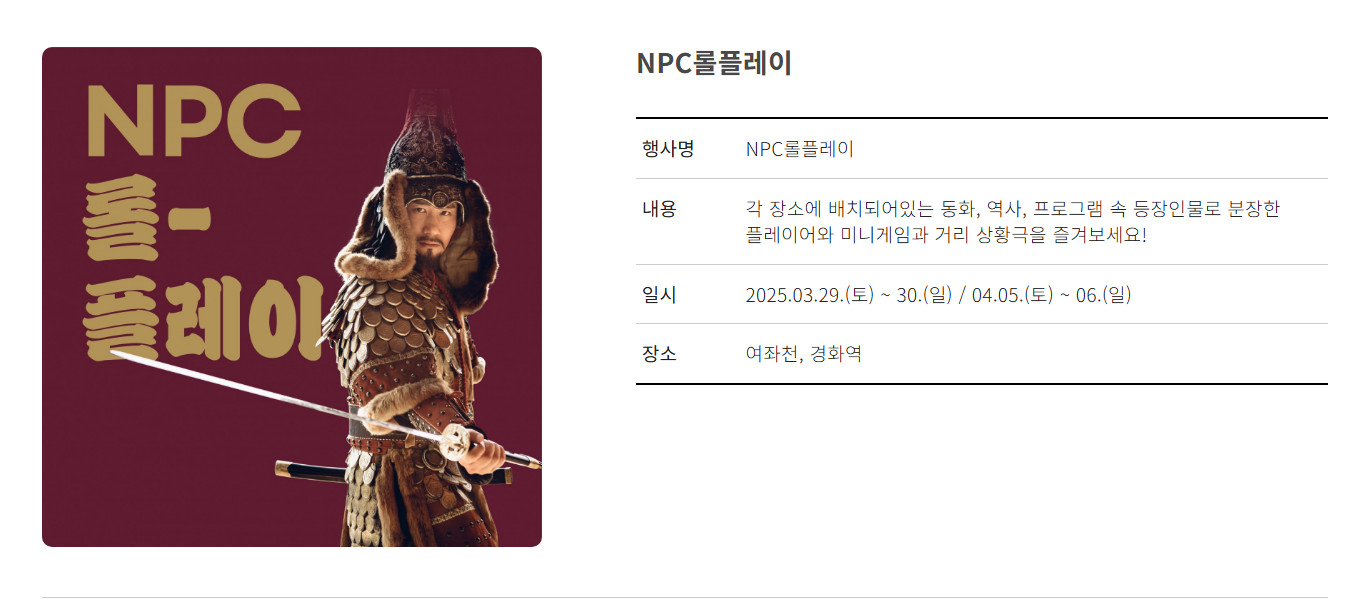 - 기간: 2025년 3월 29(토)-4월 6일 (일) 9일간